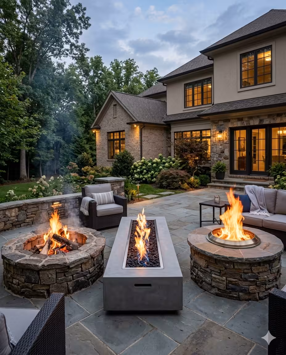 Custom fire pits and outdoor fireplaces engineered for safety, year-round use,